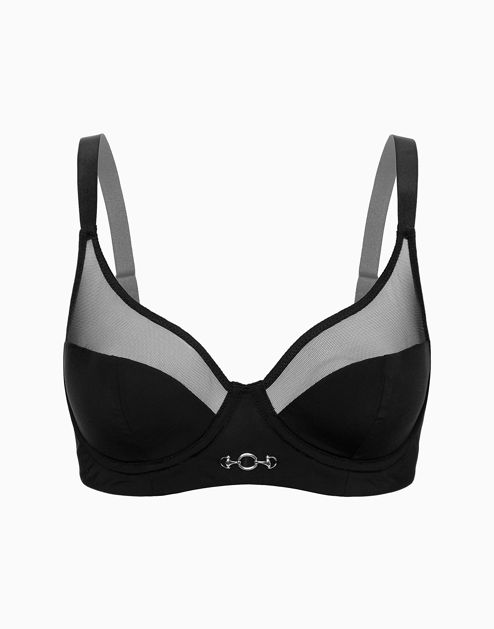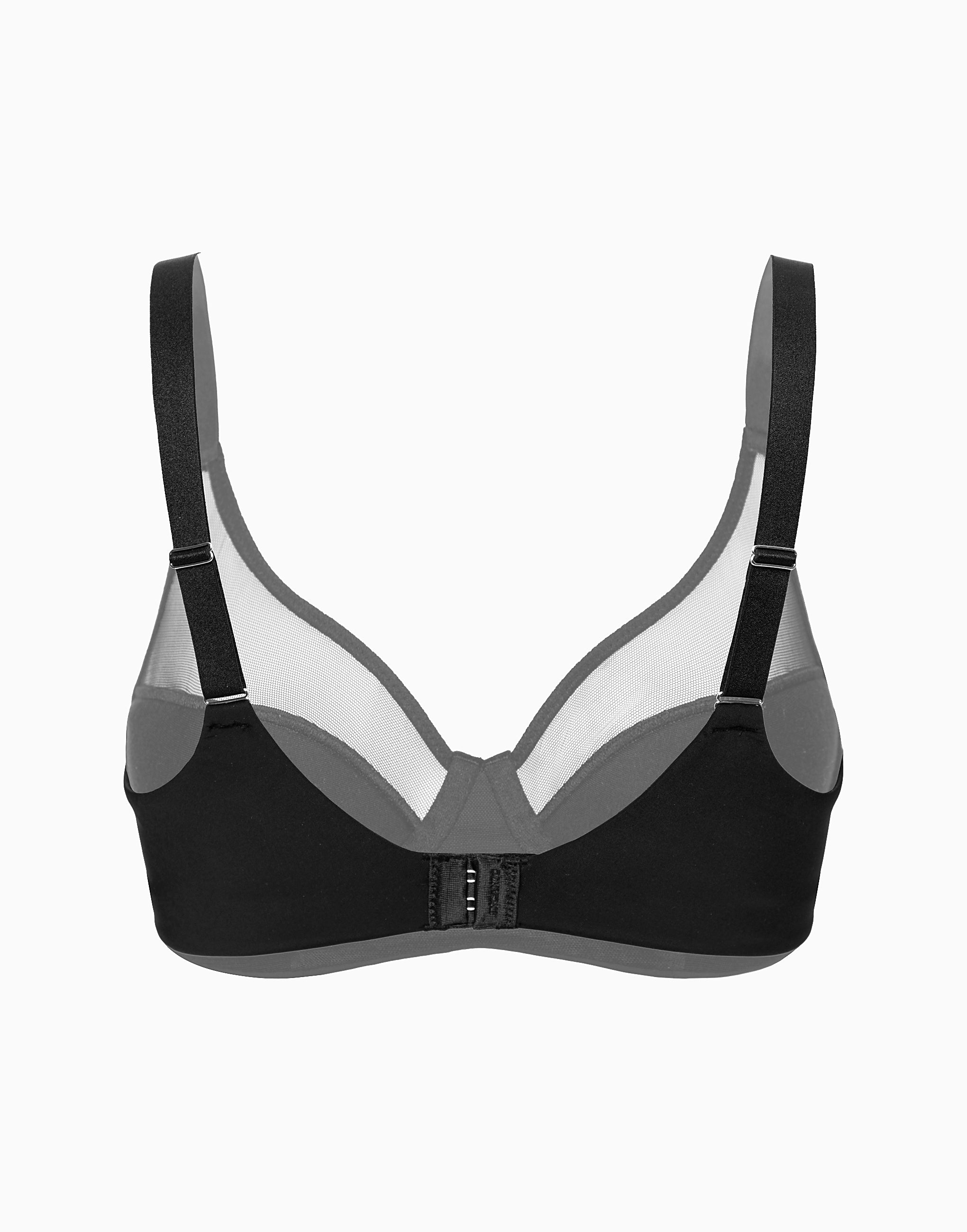 Бюстгальтер с мягкими чашками и махровой поддержкой вокруг груди. Мягкие чашки украшены рельефными Т-образными деталями. Верхняя часть чашки выполнена из тонкой полупрозрачной ткани. Внутренняя часть чашек выполнена из махровой ткани.