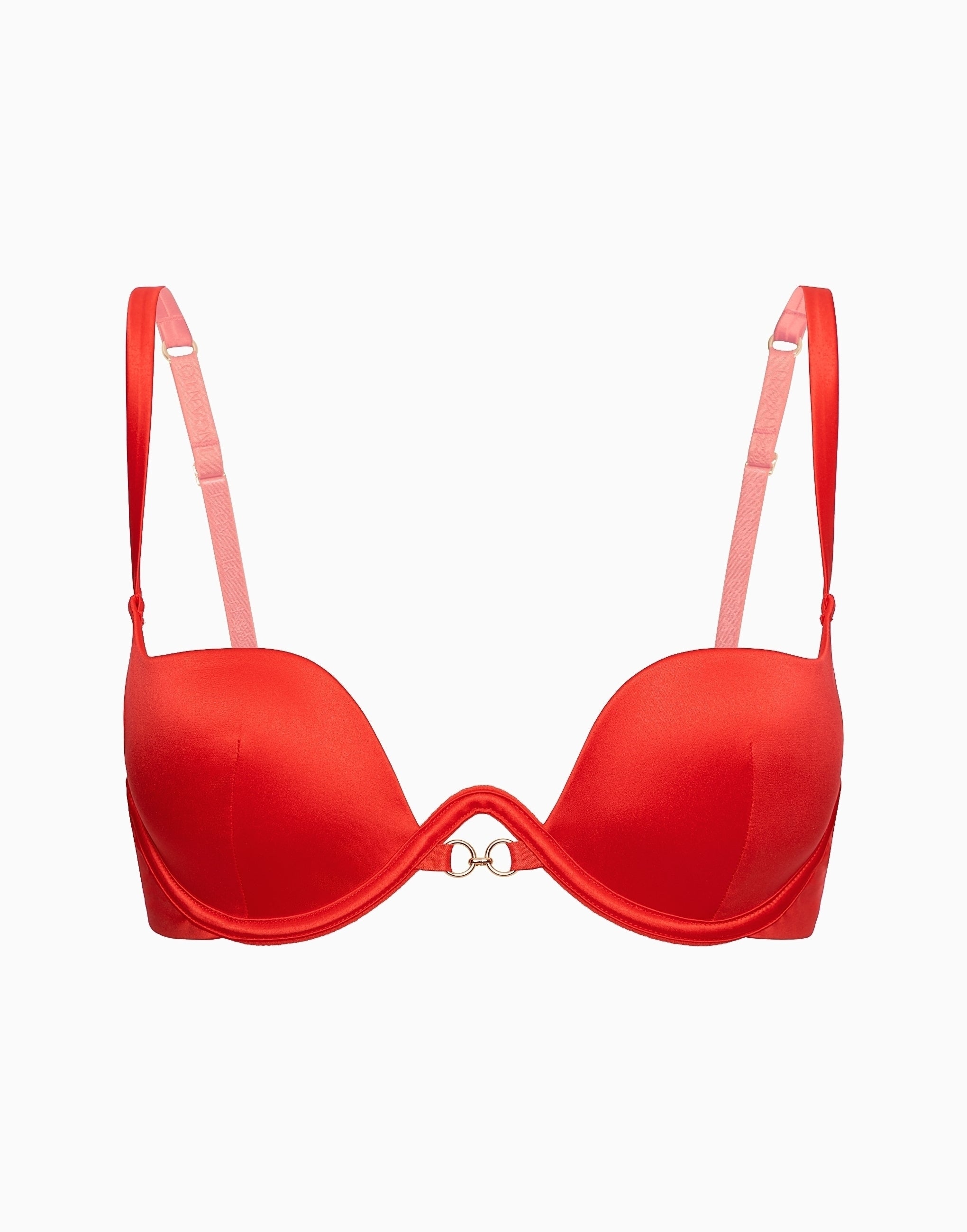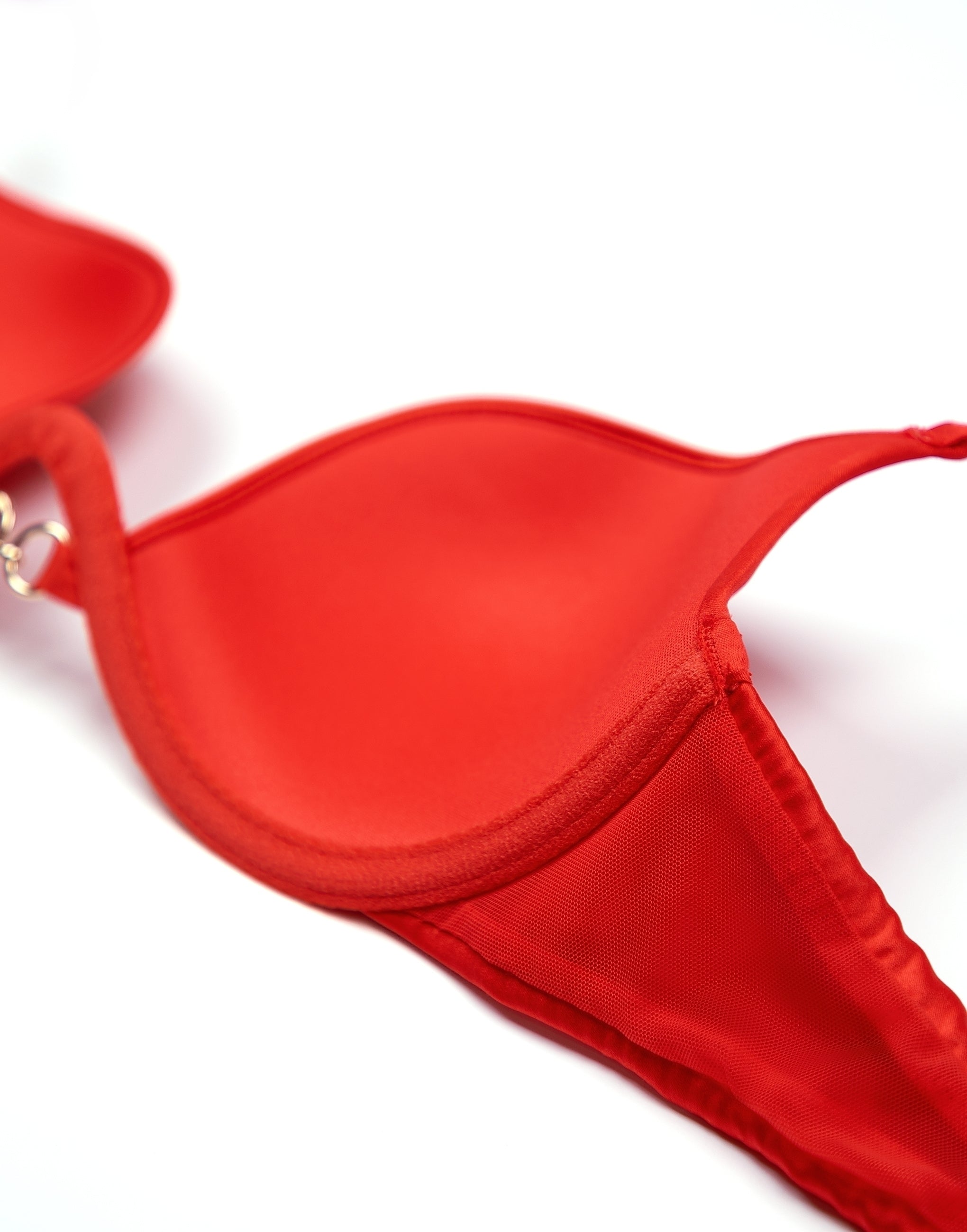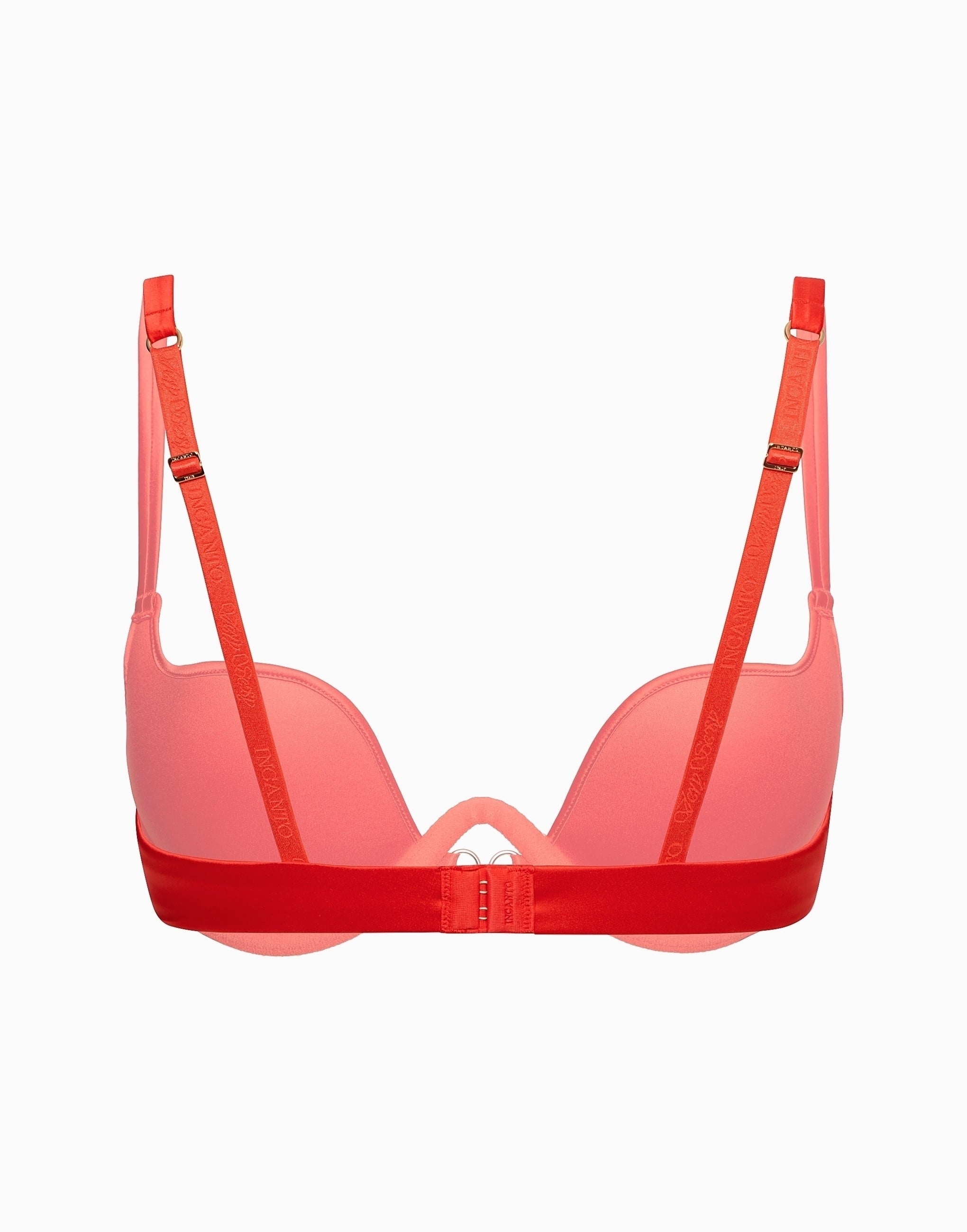 Бюстгальтер с предварительно сформированными получашками. Модель без эффекта «пуш-ап» создаёт соблазнительное декольте благодаря контурным чашкам и глубокому вырезу.