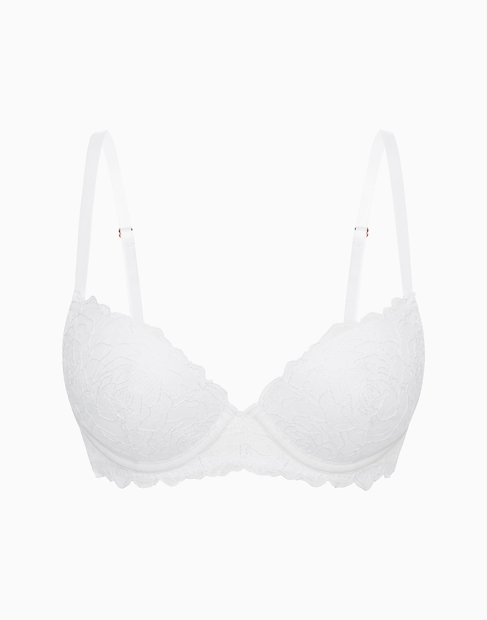 Бюстгальтер с двойным пуш-апом (этот эффект присутствует в чашках A и B) с формованными чашечками вокруг груди. Чашки C и D не имеют пуш-ап эффекта. Идеальная поддержка и двойной объём. Идеально подходит для девушек с небольшой грудью.