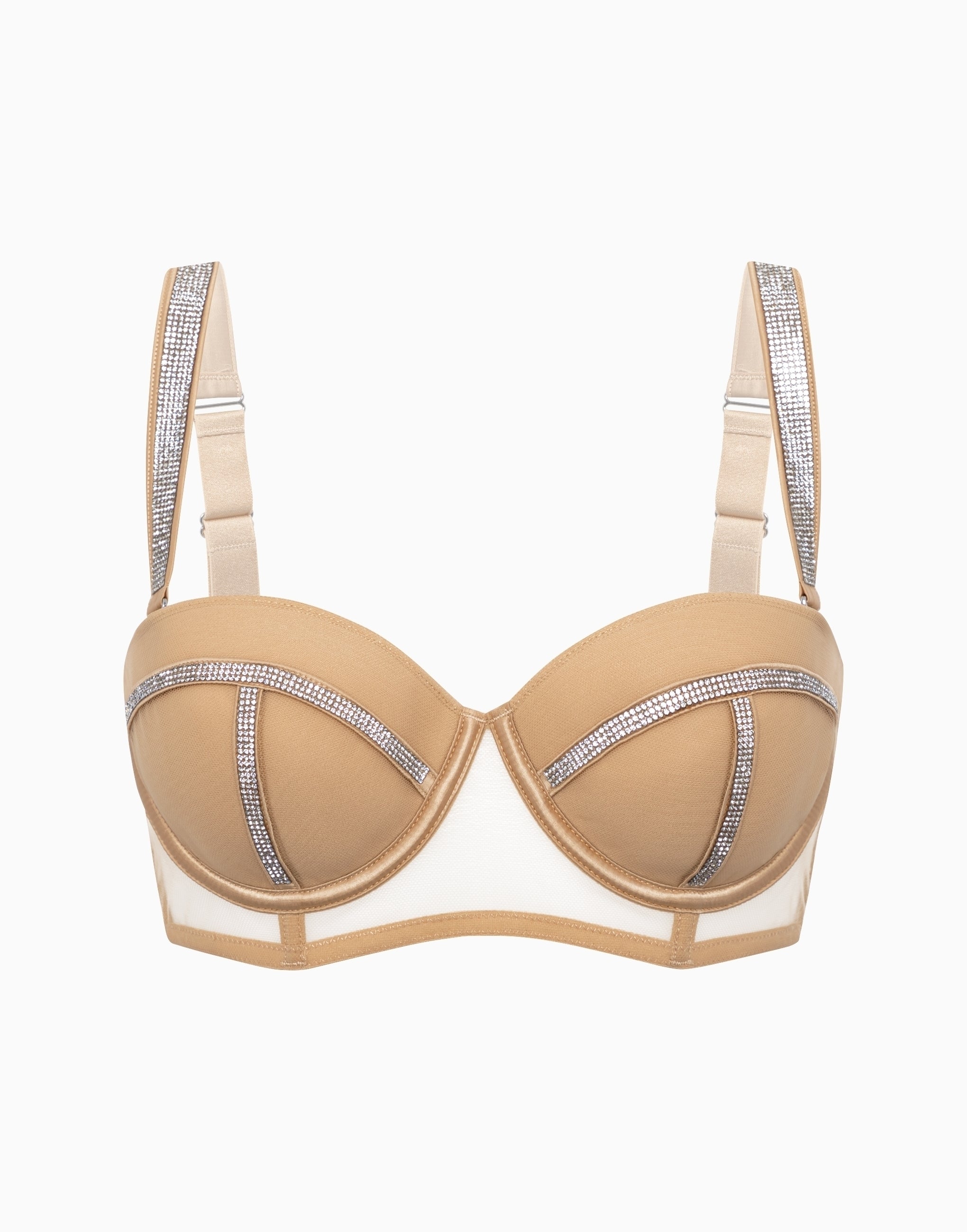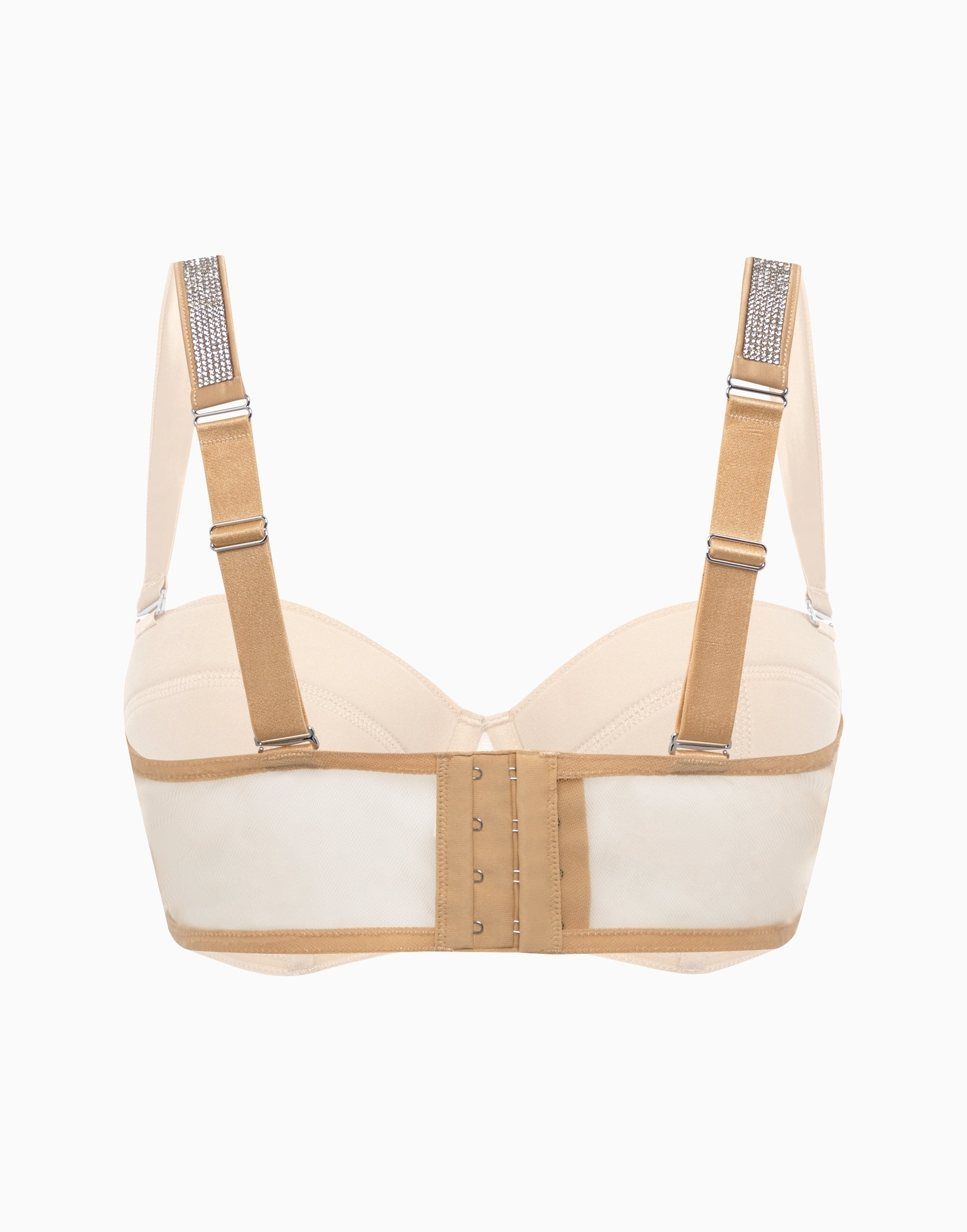 Бюстгальтер-балконет с мягкими чашками и губчатой поддержкой на нагрудном ремне.